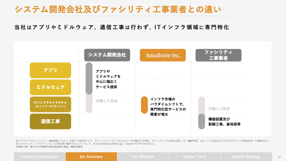 『新たなITサービスの誕生と成長をネットワークインフラの側面から支え、社会の発展へ寄与する』というVisionを掲げ、ネットワーク仮想化・クラウドソリューション・ITセキュリティ・ワイヤレス、主に4つのサービス領域の展開で次世代ITインフラストラクチャで業界を牽引する安定企業。