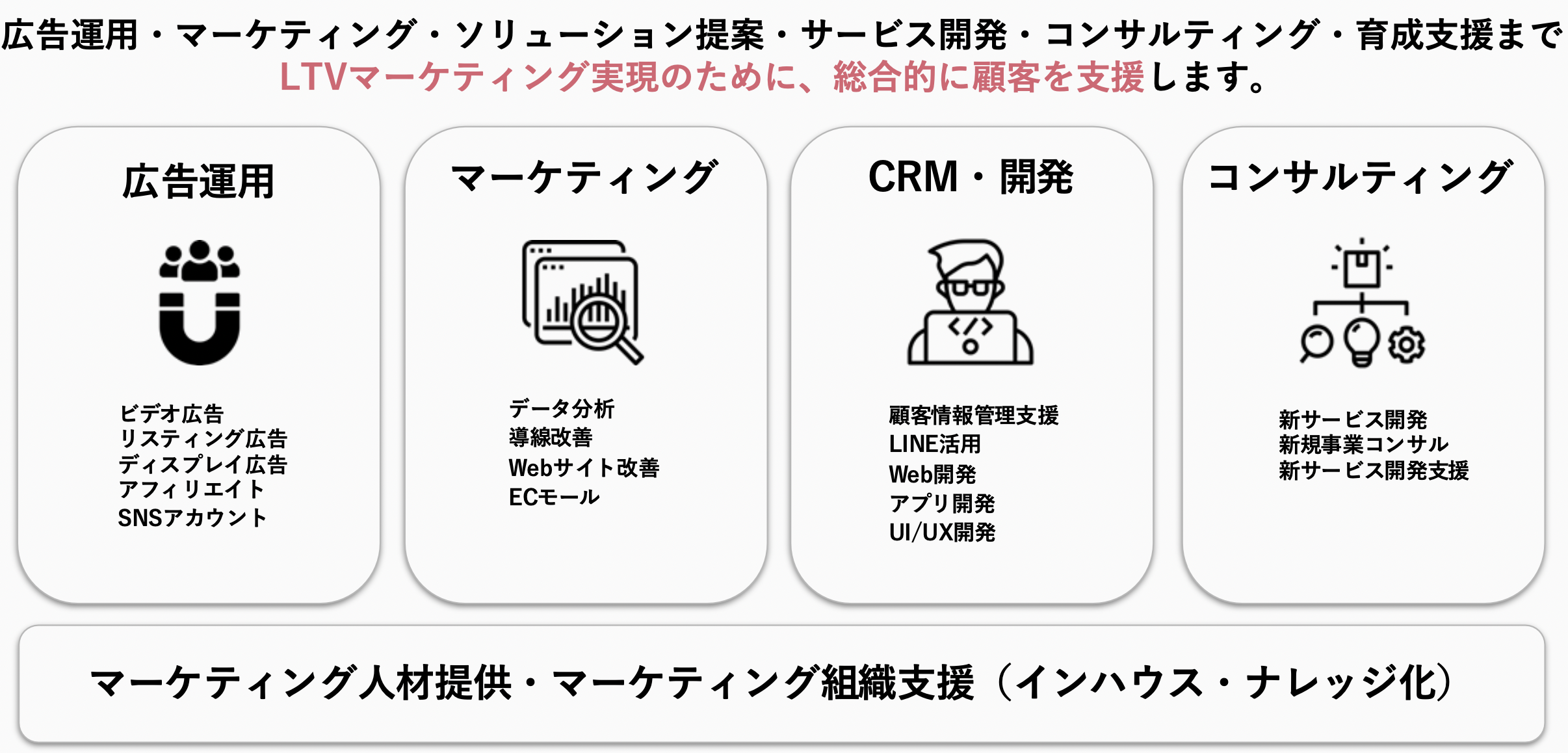 オプトは、デジタルホールディングスグループが目指す「産業変革」に向け、自らが産業構造を深く理解することで広告産業の変革を推進しているマーケティング企業である。その実現に向け、オプトは、顧客の顧客(エンドユーザー)の解像度を高め、利益や認知を高めるマーケティングだけでなく、長期的に顧客の事業成長を推進する「LTVマーケティング」を通じ、顧客を先導・支援している。