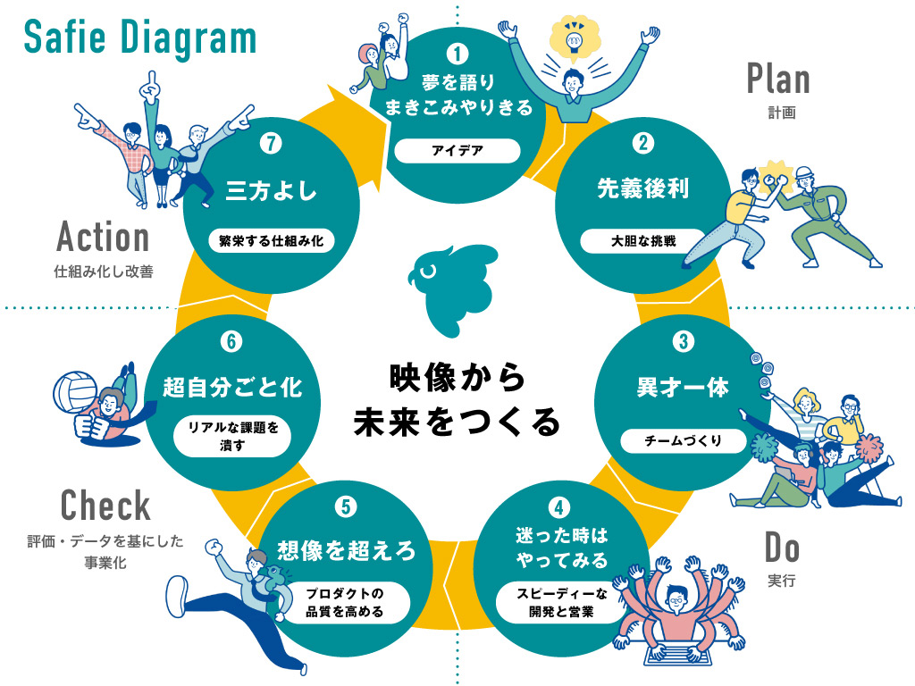 それぞれを個々人が Plan (計画)→Do(実行)→ Plan Check(評価・データを基にした事業化)→ Action(仕組み化し改善)に沿って実行し続けてゆくことが、チーム「Safie」の『culture』である。