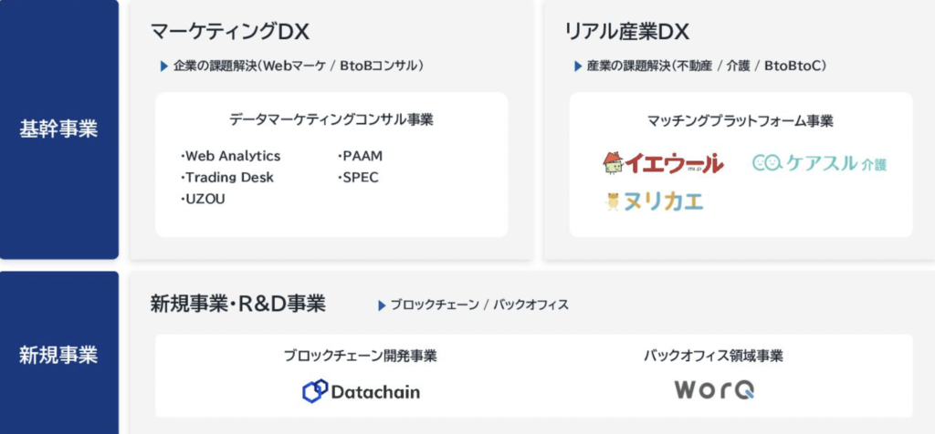 『解き尽くす。未来を引きよせる。』というVisionを掲げ、データドリブンな事業開発の連鎖で顧客企業や対象業界のデジタルトランスフォーメーション(DX)を推進。