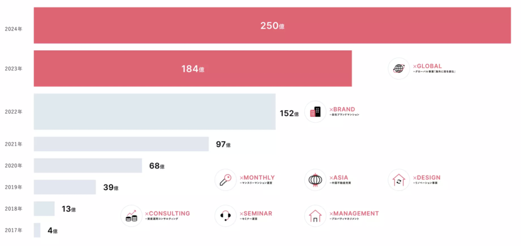『まだ、歴史にないコトを。』というVisionを掲げ、不動産投資×IT企業の先駆けとして事業創造を行い、従来の不動産投資とは異なり全てWebマーケティングを起点としたコンサルティングで急成長を遂げてきた。